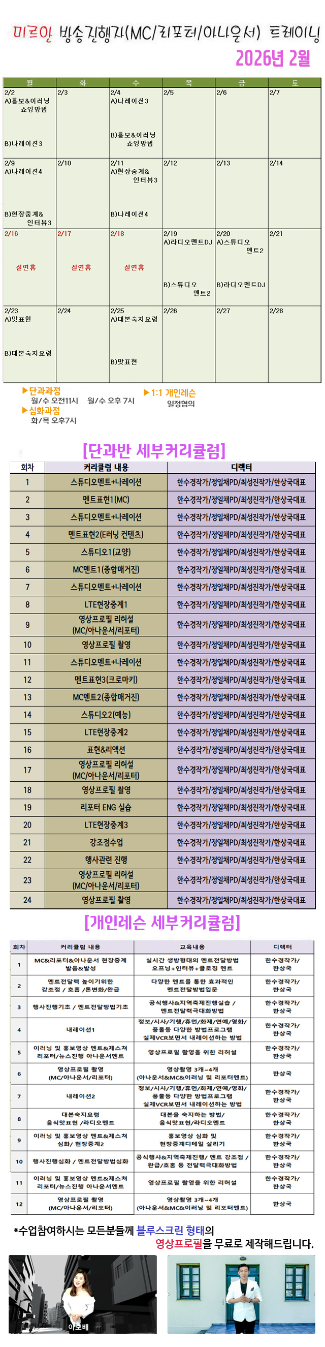 [2026³â 2¿ù]¹Ì¸£¾È ¸®Æ÷ÅÍ&MC(¾Æ³ª¿î¼)°úÁ¤ Ä¿¸®Å§·³